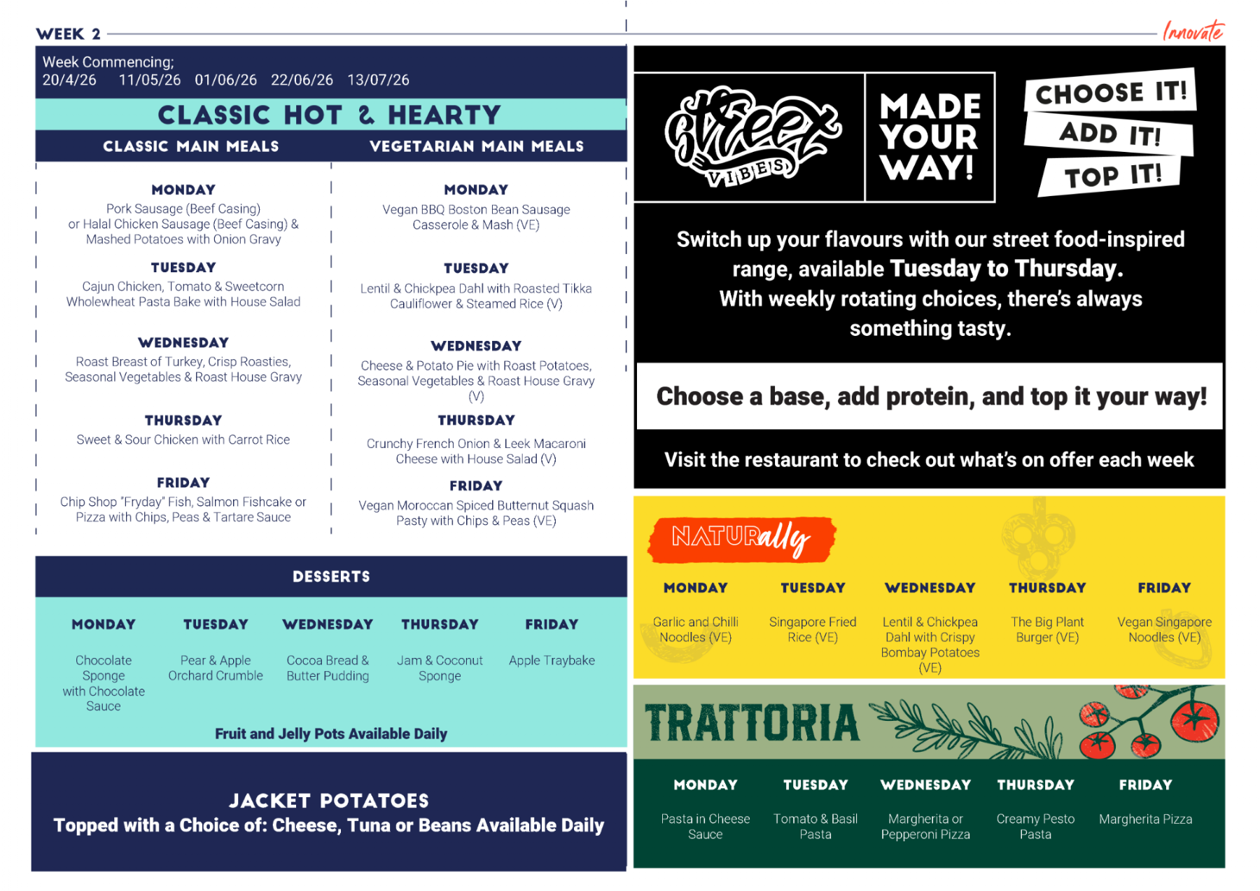 Menus available week commencing the dates shown on the images below.